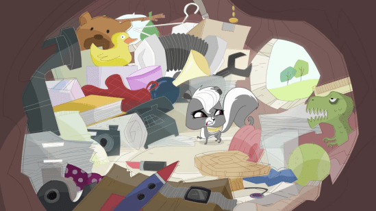 Then a bunch of animals swarm in, including Shivers, as Twombly explains that the younger generations fail to appreciate the beauty of nature.