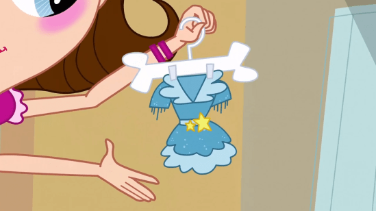 Zoe, fearing the worst, asks Blythe for some words of encouragement. Instead EgoBlythe pulls out a little blue dress. Which brings Zoe to tears… sad ones.