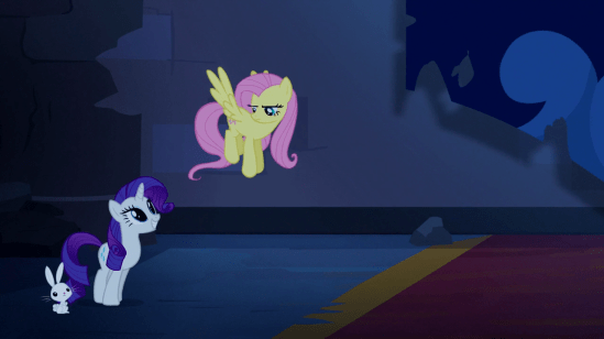 Meanwhile, Fluttershy and Rarity run across a tapestry, and Fluttershy starts to get annoyed at her friend’s demands.