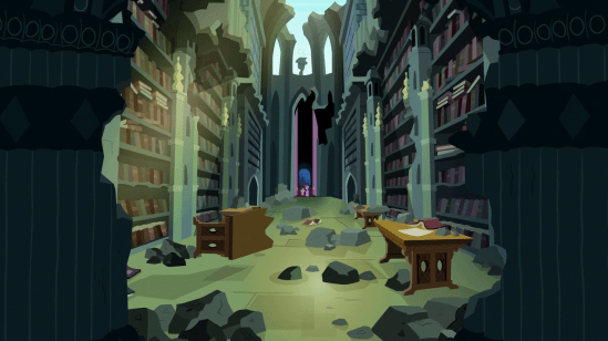 Anyway, it’s at this moment, Celestia suggests Twilight visit the old castle ruins in the Everfree Forest, where there’s a library that could help her.