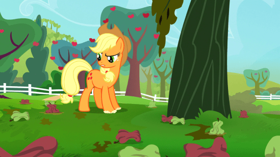 Plus, these bats are apparently spreading throughout the orchard, and destroying every crop they come across. Which leaves Applejack, like any farmer, quite distressed.