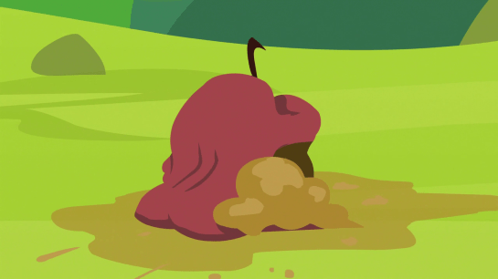 Meanwhile, Fluttershy tries to put things in perspective. Explaining that they just want to eat, and feed their kids. Plus, the seeds they spit out will result in stronger trees and–nope, that makes no sense. I don’t know what you’re thinking, but that makes no sense. The genetic material within the seeds are not affected by what recently ate it. And even then, domesticated apple trees are not planted from seeds. What comes from the seed just wouldn’t be close enough to the original. Apple farmers actually use a type of cloning where they plant a branch. I’m oversimplifying, but that’s basically what happens. So the seeds are generally thrown away. They’re not useful to an apple farmer.