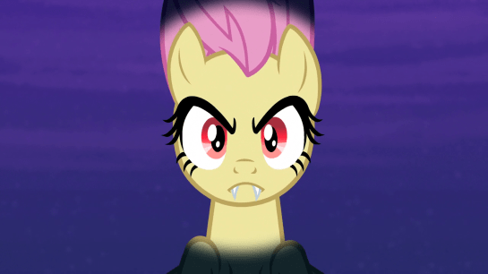 So with Fluttershy successfully neutralized, they reverse the spell, she returns to normal, Applejack opens a vampire fruit bat sanctuary, and happy endings all around.