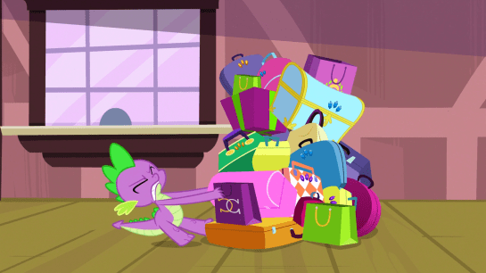 The story is all about the gang’s trip to Manehattan, to support Rarity’s participation in the Manehattan Fashion Week. They arrive at the train station, and Rarity has her first moment of shining bullshit when she asks Spike to carry her bags.