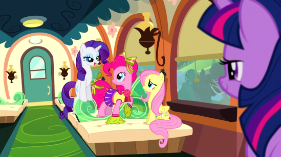 Well, turns out, she can’t keep it secret, since Twilight confronts her on the issue. She was the only one who noticed? I guess because she was the only one with nothing to do. Seriously, why is she there? Doesn’t she have royal duties or something?