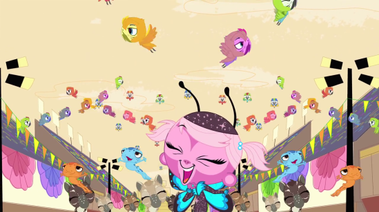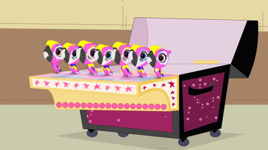 But on Littlest Pet Shop, it’s been much more pervasive, as we see characters mention events from earlier episodes on a regular basis. Like the Pet Jet, the Pet Fashion Expo, and Russell’s phasmophobia. And I think it finally reached its peak, on the day the pets take a trip to Rio De Janeiro for the big Brazilian Carnival (car-nih-VAHL) celebrations! Primarily because it feels like a sequel to an earlier episode, and because it just won’t stop it with the callbacks!