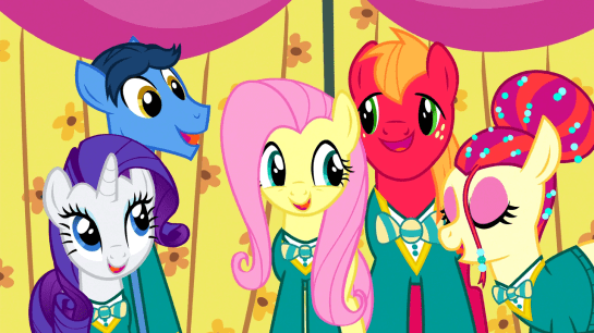 Anyway, it’s not long before Mac’s voice is all healed up, and now Fluttershy can retire from musical fraud. Woohoo!
