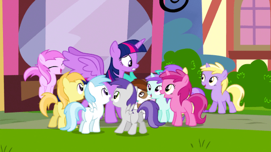 Anyway, Diamond and Silver Spoon ask to join them for “Twilight Time,” because, as she puts it: while Twilight was just an ordinary unicorn, she didn’t matter; but now she’s a princess, holy shit!