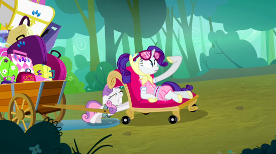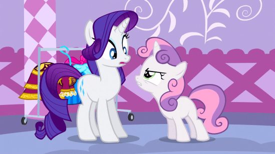 Now, as we all know, Sweetie Belle’s relationship with her sister is rocky at best. But they both try! Which awards some points. Though sometimes, their attempts at sisterly love aren’t exactly successful. Sweetie Belle has a tendency to ruin Rarity’s work, and Rarity has a tendency to employ Sweetie Belle as slave labour.