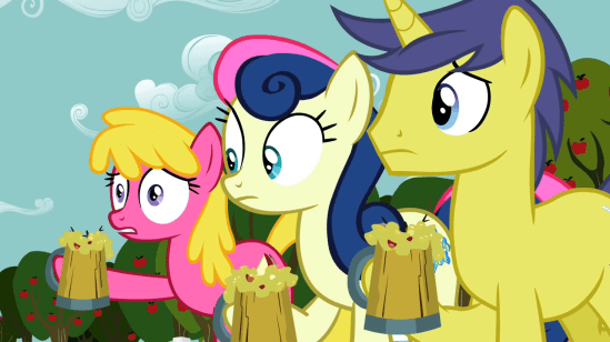 And on a final note, we have a fifth episode to add to this season’s loosely defined story arc. And it’s the only thing I really don’t like. I’ve already banged on about this, but I don’t care, because this episode’s arc-related scene made the least amount of sense out of any of them. In earlier episodes, the rainbows-in-the-eyes shot represented some epiphany the character had. But Applejack already came to the conclusion that she shouldn’t support con artists well before that happened. Then there’s the gift of a single bit, which should’ve been given to the pony who got conned out of it. Oh, sure Silver says he’ll pay the pony back with a different bit, but that just seems to be a case of skewed priorities. And again, giving her anything at all doesn’t really make sense.