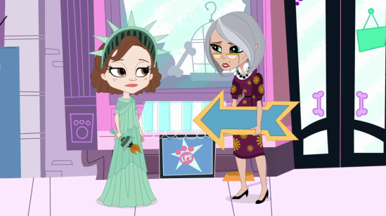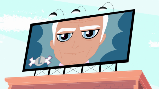 You see, while all that’s going on, Fisher Biskit was in the middle of an advertising blitz for Largest Ever Pet Shop. And that formed the entire B-plot. Because as he’s doing this, Twombly’s responding in kind. She even hires some outside help in the form of someone we haven’t seen in a long while.