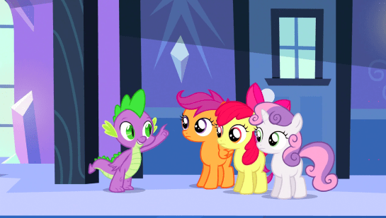 So after that horrifying disaster, Spike certainly needs some cheering up. And who better than the show’s designated bundle of concentrated cuteness: the Cutie Mark Crusaders!