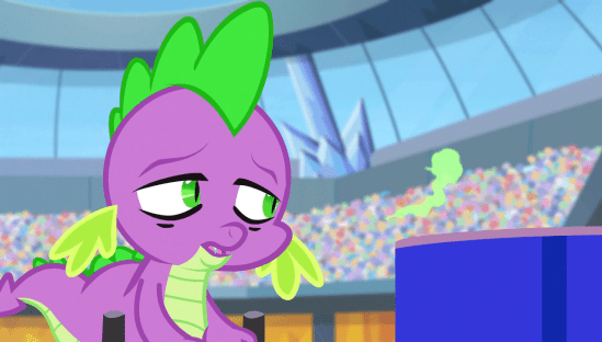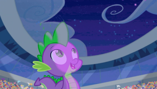 And Spike explains he feels the same way. Which is when Twilight finally come to the realization that true self-esteem, which Spike currently lacks, doesn’t come from people telling you you’re great, it comes from within. He has to prove his own worthiness to himself, because nothing else really matters. And it all comes down to the torch-lighting ceremony. If only he could play a Mulligan on that. Then Cadance suggests Spike light the fireworks at the closing ceremony. So he does, and it goes off without a freak out, or a flame out.