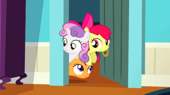 So after that horrifying disaster, Spike certainly needs some cheering up. And who better than the show’s designated bundle of concentrated cuteness: the Cutie Mark Crusaders!