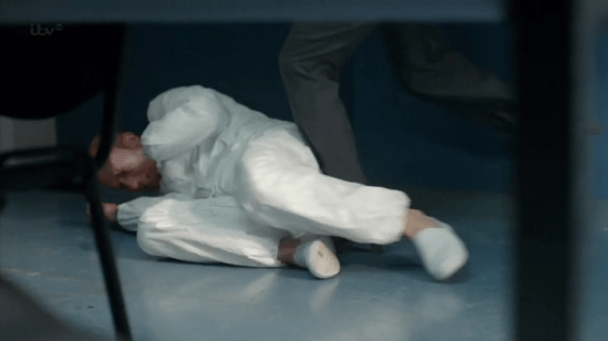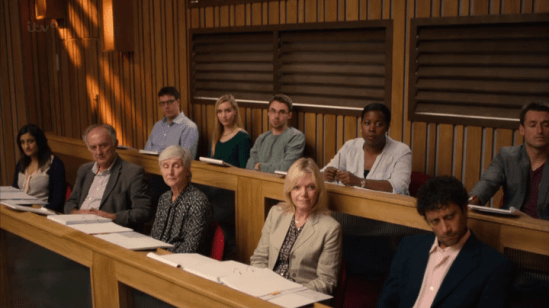Sabatons are the foot covering on medieval armour. This fact is brought to you by the letter ‘M’, for murdering bastard, about to go free. Because even with all of Hardy’s insisting that Ellie’s Hulk moment was the only time Joe Miller was attacked, it doesn’t convince the Judge, and she has the confession thrown out. Though it makes me wonder why the defence even allowed the jury to hear it in the first place.