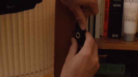 So Hardy plants a few hidden cameras around the place, and by ‘hidden’ I mean behind a few greeting cards, and out in the open on a bookshelf.