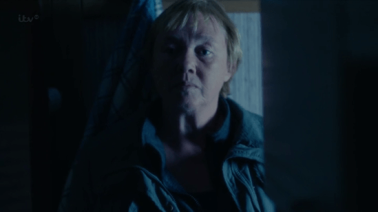 Anyway, they head back to Sandbrook, where their first order of business is to investigate the crime scene, Lee Ashworth’s old house. And right next door lives the victim’s mother: Cate Gillespie.