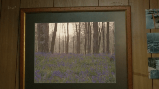 See, told you he was a prime suspect! Why the hell was he in contact with Claire Ripley? Oh, and in his office, is a framed photo of a field of bluebells!