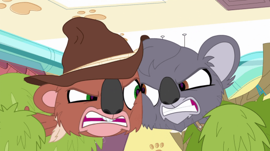 While this episode was by no means terrible, half of it was pretty pointless. The plotline in the pet shop, while thematically connected to Blythe’s plot thread, is stupid and irrelevant. It’s not made entirely clear why the main cast gets roped into the feud, or why the koalas even want them to be part of it. I guess they want the conflict to be validated, so they get others to agree with them over the other. But they don’t even explain why exactly they hate each other, they just say, ‘that guy’s an asshole,’ without giving further information! A few details should’ve cropped up at that stage. In fact, as the two of them started throwing insults at each other, it seems odd that they wouldn’t try to defend themselves. Instead they just sit there and take them. If the insults were vulgar, that might’ve made a bit of sense, mainly because there is no defence to a vulgar insult, only a counter-attack. But they weren’t vulgar. Mainly because this is a kid’s show, and that kind of language isn’t allowed.
