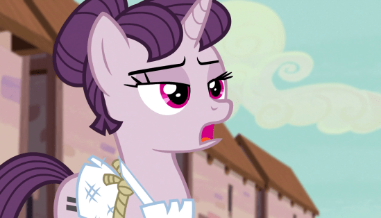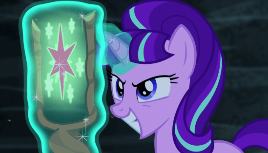 Would I describe her as ‘Bond-esque’ though? Well, let’s say ‘yes.’ But it’s been a while since I’ve seen any Bond movies so I’ll have to go back. Nonetheless, the point is, she’s not some Eldritch horror, but just an average pony; the kind our heroes might see on the street, and never otherwise take notice of. Which also makes her a bit more relatable than any other villain before her. And I’m assuming that means she has some amazing back story we’re yet to see. What caused an average unicorn to go to such lengths for such a batshit cause!? What caused her to believe in it in the first place!? My guess is that she had real friends, but either she got good at something or one of her friends did, and either they or she got jealous and resentful of the other’s success, and their friendship broke apart as a result. Of course, Starlight thought it was the success that caused the breakup, not just one of them having a shit personality. But regardless, it inspired Starlight to come up with this new utopian philosophy of conformity, and she developed the mark-stripping spell, and formed the town of Clopford.