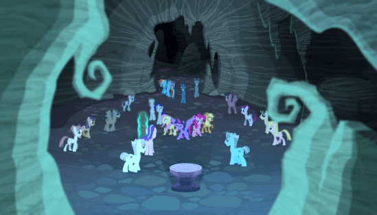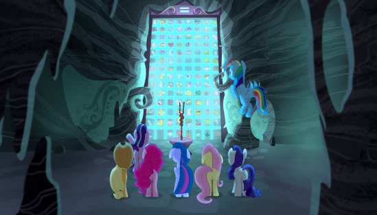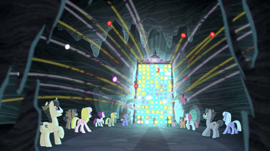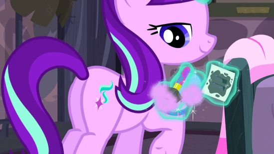 So, they ask Starlight to show them the vault, which she does. She also shows them the Staff of Sameness, which allows her to remove cutie marks. Oh, and then this happens: