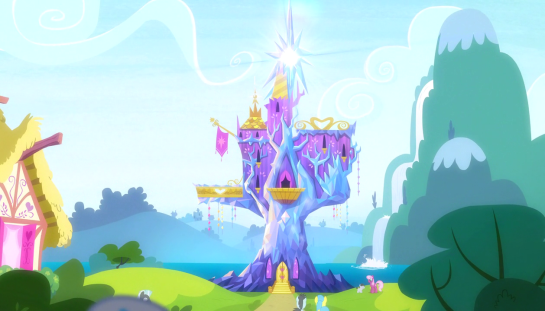 Best guess, after her last home was destroyed, the Tree of Harmony decided to build her a new one. But why the six and a half thrones? Why place it in Ponyville? If her job is to ‘spread the magic of friendship across Equestria’ (which my brain is translating into: Teach ponies to get along and not be dicks), why have them hole away in some castle?