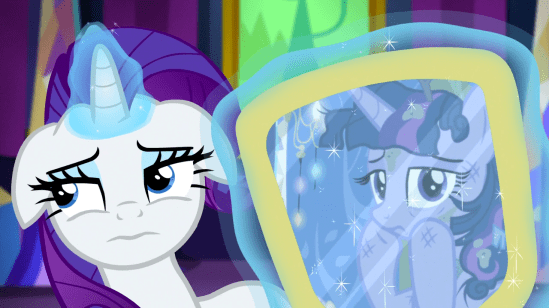 I mean, not to diss the girl any more than I already have, but one would expect a ‘princess’ to relish the opportunity to live in an oversized and gaudy castle. But that’s not Twilight. Twilight’s much more practical than that. Gaudy, oversized castles are more Rarity’s thing.