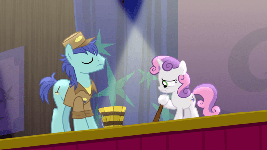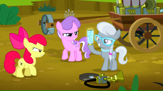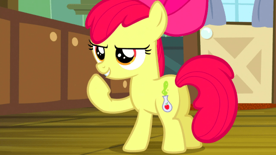 Alright, potion making! And she’s excited. So she rushes off to tell her friends, who are happy for her… then they expel her from the Cutie Mark Crusaders.