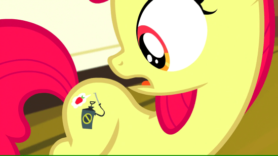 But what is it a cutie mark of? Well obviously, she’s a fumigator. And it just so happens there’s a fumigator nearby who’s so happy that he can retire by teaching Apple Bloom how to be a pest pony.