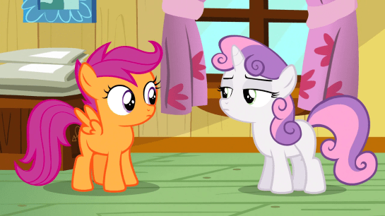 Alright, potion making! And she’s excited. So she rushes off to tell her friends, who are happy for her… then they expel her from the Cutie Mark Crusaders.