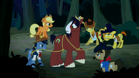 … Well, it’s official, Silverstar is shit at his job. Lazy prick. But once they’re informed of the Crusader’s disappearance, they pop into action, because Applejack suspects Troubleshoes is behind it.